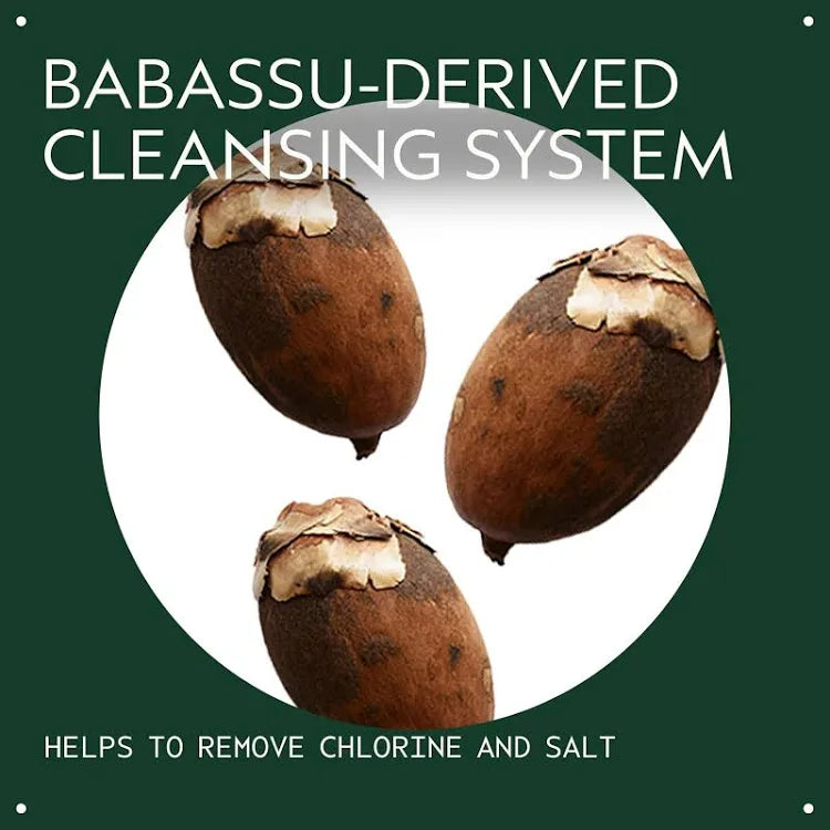 This chlorine shampoo has a colour-safe formula with corn-derived chelator that gently removes chlorine, salt and product residue. Enriched with tamanu oil and organic coconut oil, this chlorine body wash and shampoo helps maintain moisture balance. With green tea, certified organic sunflower oil and vitamin E, this chlorine shampoo is for all hair types.